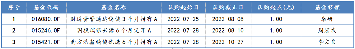 Wind数据显示,本周(7月25日-7月29日)共有22只新基金(A、C份额合并计算)将陆续发行,涉及天弘基金、景顺长城基金、万家基金、华夏基金、工银瑞信基金等多家基金公司。从基金类型来看,本周新发的产品中权益类基金担当发行主力军,共有11只主动权益类基金和2只指数型基金在本周开启认购。此外,还有1只偏债混合型基金、3只纯债型基金、2只混合二级债基以及3只FOF基金也将在本周面市。