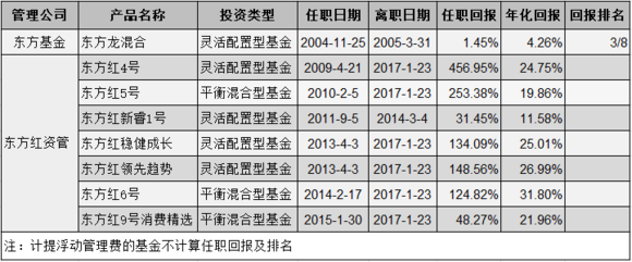 陈光明是长期业绩最突出的基金经理之一。在2018年从东方红资管辞职之前,陈光明一直从事东方证券的资管业务。其管理的基金全部都得到绝对收益,其中东方红4号基金(J09006.OF)八年收益率456.95%,复权净值增长率超700%,是业内首屈一指的长跑健将。