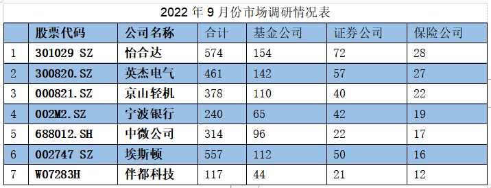 淡水泉是最勤劳的百亿私募,仅9月就现身42家上市公司的调研,其中埃斯顿去了三次,怡合达、中来股份、苏泊尔、立华股份各去了两次;景林资产则调研了英杰电气、盛航股份、万润股份等;高瓴资本仅出现在英杰电气、中微公司、思瑞浦、中复神鹰4家公司的调研名单中,其旗下的二级私募瓴仁也现身英杰电气、埃斯顿、中微公司、乐惠国际4家公司。众所周知,泉果基金成立后的首只产品即将发售,这也是赵诣加盟后的首秀,显得至关重要。泉果也在9月调研忙,调研了18只个股,怡合达是唯一一家去过两次的公司。从百亿私募的调研情况我们也发现,怡合达成为年度最受关注的公司。