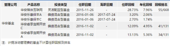 胡宜斌,硕士研究生学历,历任杭州核新同花顺股份有限公司产品经理,长江证券股份有限公司研究员,上投摩根基金管理有限公司研究员。2015年11月起任华安媒体互联网混合型证券投资基金的基金经理,投资经理从业年限为3.79年。胡宜宾在管理基金期间,其基金回报均位于同行前列,华安媒体互联网混合是其业绩最好的一只基金。