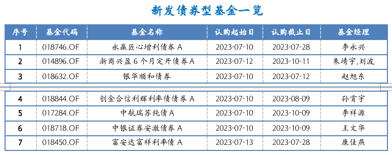 备注:永赢匠心增利债券A、浙商兴盈6个月定开债券A、银华顺和债券、创金合信利辉利率债债券A、中航瑞苏纯债A、中银证券安澈债券A、富安达富祥利率债A