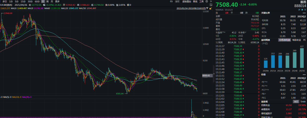 图一医药指数(884201)日k图