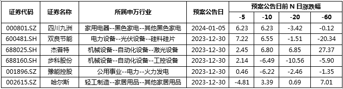 从数量上看,本周在除限售解禁日之外的定增各节点涉及的股票数量与上周相比均有所回落,但相比于新规后的市场低迷期仍保持了一定的增量水平,与上周的判断一致。据此可以推测,上周定增各节点涉及股票的数量大增的主要原因为年底的节假日效应,并叠加了定增市场在新规后的逐渐缓和。从行业上看,电子、基础化工、机械设备等行业的上市公司在定增市场持续活跃,电力设备行业与2023年三、四季度的冷淡期相比活跃程度有所提升。从股价日前表现来看,公告日前5日内大部分股票价格上涨,这主要与上周的反弹行情有关。