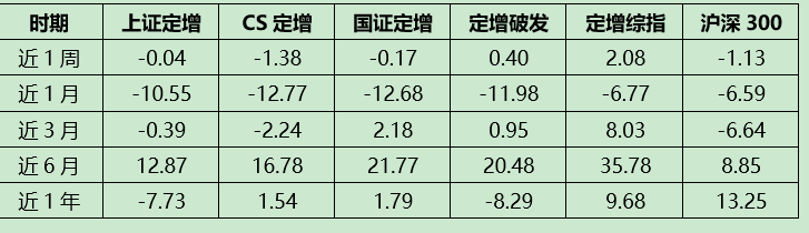 本周,定增板块主要指数除CS定增之外均跑赢沪深300指数。从更长的时间维度看,近1个月定增板块主要指数均跑输沪深300指数,、近3个月、近6月均跑赢沪深300指数,近1年则跑输沪深300。
