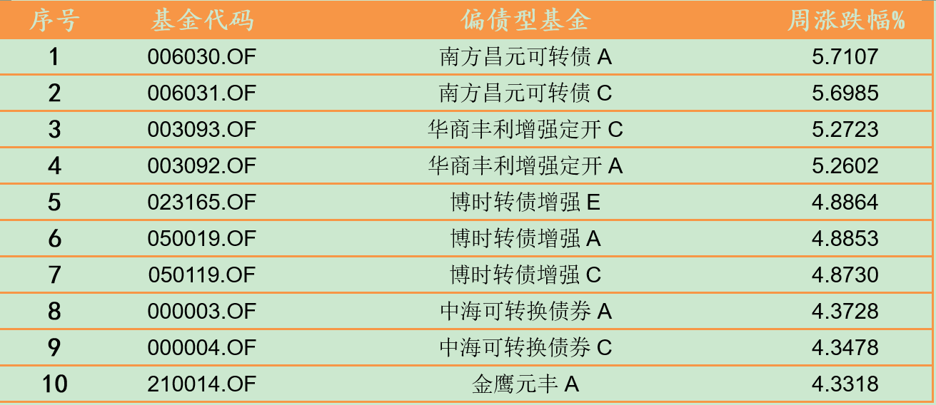 表2 2025/3/3-2025/3/7债券型基金周度表现TOP10