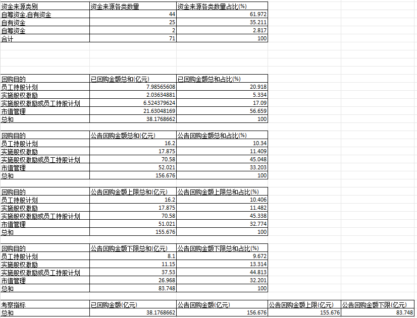 二是回购不积极,回购比例低。不少公司上市公布回购方案后,一般一个月内就有动作,很开就回购完毕。