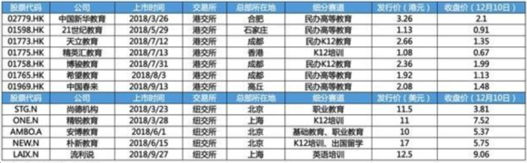 图4 2018年教育企业上市情况