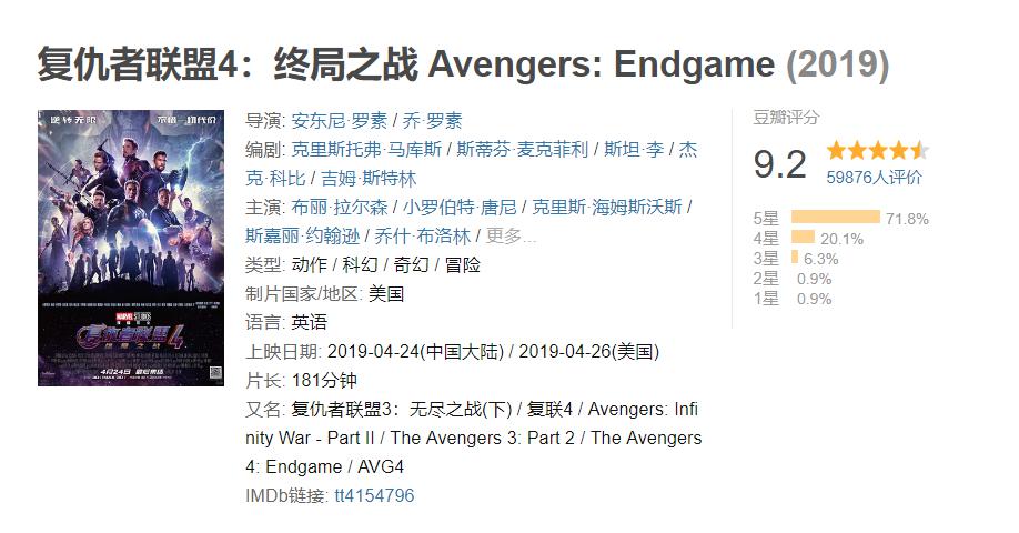 随着观影观众的指数型爆炸型增长,《复联4》的豆瓣评分也迅速攀升,让人为之惊叹,5万多人综合打出了豆瓣9.2的超高分!成为超级英雄电影的豆瓣评分巅峰!