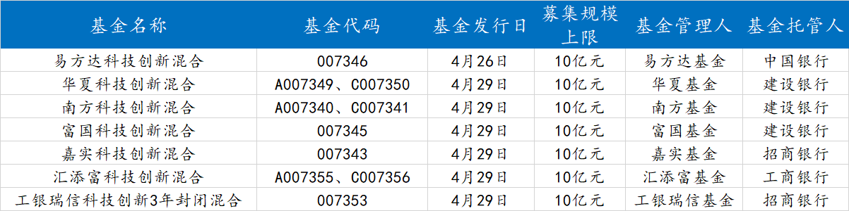 7只基金均以“科技创新”命名,投资范围既包括科创板,也包括现有的中小板、创业板等。具体来说要涵盖科技创新主题领域,主要投资于那些科技创新企业,即坚持面向世界科技前沿、面向经济主战场、面向国家重大需求,主要服务于符合国家战略、突破关键核心技术、市场认可度高的企业,重点关注新一代信息技术高端装备、新材料、新能源、节能环保以及生物医药等高新技术产业和战略性新兴产业。