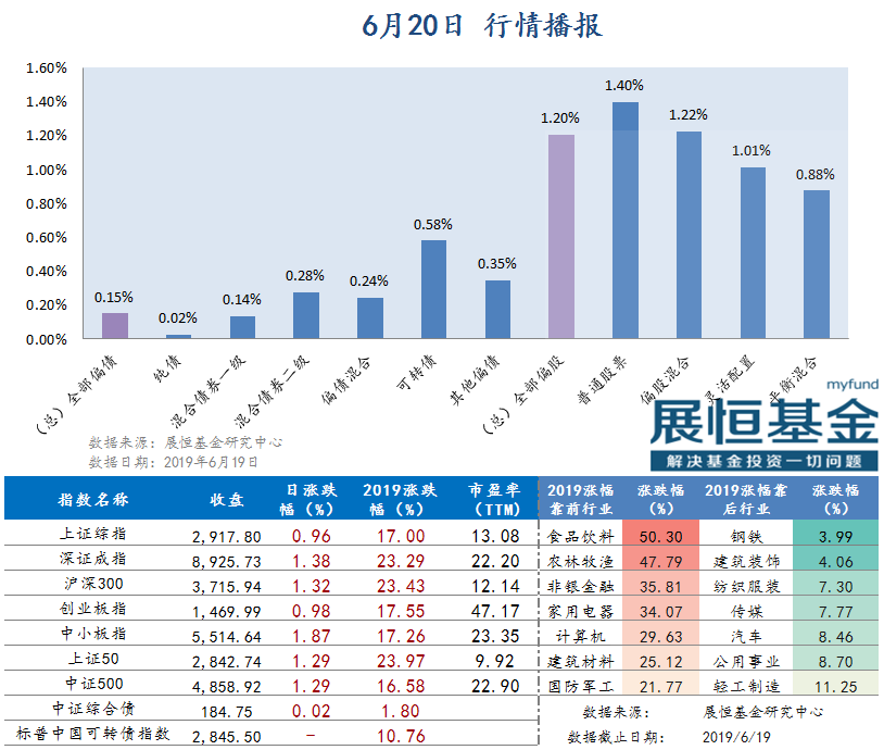 4、【“打新时刻”临近 投资者可多渠道参与】6月19日,科创板首股华兴源创公告了其新股网上申购时间及申购代码,科创板即将进入“打新时刻”。业内人士分析称,个人投资者顶格申购中签率或达0.93%。而无法参与打新的普通投资者也可借道公募基金参与科创板打新,从而增厚自身收益。此外,考虑到科创板股票大都属于小盘股,为防止拉抬或打压股价,科创板股票交易新规及限制颇多,普通投资者需仔细研究交易所相关细则。
