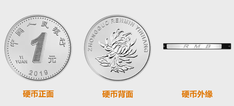 与1999年版第五套人民币1元、5角硬币和2005年版第五套人民币1角硬币相比,2019年版第五套人民币1元、5角、1角硬币调整了正面面额数字的造型,背面花卉图案适当收缩。
