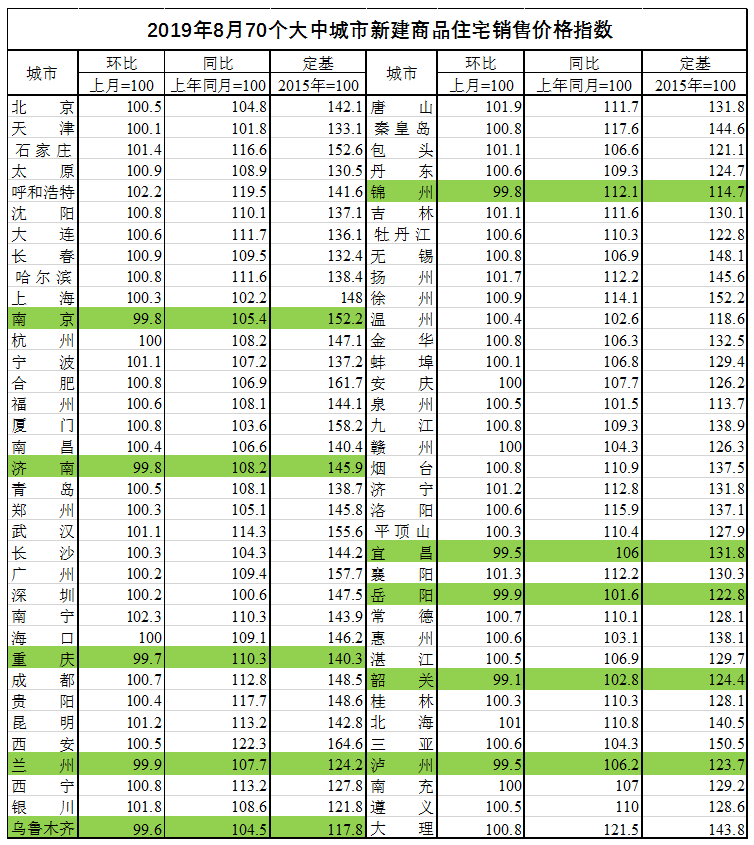 国家统计局9月17日公布了8月70城最新房价数据。自7月30日中央强调“房子是用来住的、不是用来炒的定位,要求落实房地产长效管理机制,提出不将房地产作为短期刺激经济的手段”以来,8月份房地产市场总体延续平稳态势。
