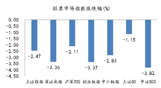 本周,A股主要指数普遍下跌,上证50跌幅相对较小为-1.15%,中证500、创业板指、深证成指跌幅超3%,分别为-3.82%、-3.37%、-3.36%。本周主力资金净流出1160亿,环比上升10.7%;沪股通资金净流入11.4亿、环比下降91.2%;深股通资金净流入66.1亿、环比下降57%;沪深两市日均成交额环比下降6.5%;换手率环比下降24.8%。