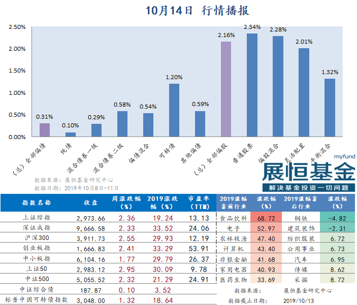 3、【年内105只基金清盘数量不足去年同期三分之一】今年上半年A股市场大举反弹、三季度以来又迎来“打新科创板”热潮,受益于此,进入清盘流程的基金也大幅减少。记者统计发现,今年以来截至10月13日,共有105只基金先后清盘,与去年同期的328只相比,尚不足三分之一。
