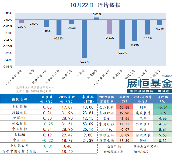 3、【固收类基金审核趋严 机构发力权益类基金】上周五(10月18日),不少近期上报债券基金产品较多的基金公司收到监管相关要求,债券型基金的审核将进一步规范。显然,与政策方向同步,大力发展权益类基金成为公募基金行业风向标。当前,债基中有一定比例为机构定制型,业内人士表示,货币基金和债券基金一直是机构资金投资避税的通道,此次规范固收类产品审核,机构定制的产品上报将受影响。