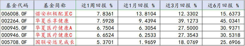 从相关主题基金表现来看,近一周wind口罩概念主题基金收益集体为正,其中诺安积极配置C、华夏乐享健康周回报均超过7%。