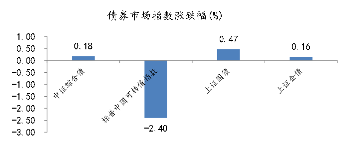 上周债市分化。上周,1年期国债收于1.92%,环比上行1BP;10年期国债收于2.68%,环比上行5BP。1年期国开债收于2.09%,环比上行4BP;10年期国开债收于3.06%,环比下行8BP。信用债方面,信用债收益率回调,上周信用债市场收益率先下后上,全周看整体上行,AAA级企业债收益率平均上行2BP,AA级企业债收益率平均上行1BP。转债方面,上周转债放量下跌。中证转债指数下跌2.49%,日均成交量314亿元,标普中国可转债指数下跌2.40%。