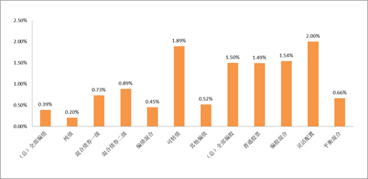 从图4可知,上周公募基金市场中偏债型基金和偏股型基金平均业绩回报均实现正收益。全部偏债基金平均收益率为0.39%,全部偏股基金平均收益率为1.50%。全部偏债基金中可转债基金表现亮眼,周涨幅达到1.89%,混合一级债基和混合二级债基周涨幅分别为0.73%、0.89%;全部偏股型基金中灵活配置型涨幅居前,周涨幅为2.00%。
