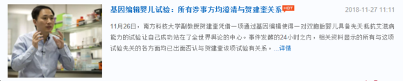 然而,在贺建奎公布基因编辑婴儿诞生后,立马引起了社会各界的广泛讨论。122位科学家发联合发表声明对此进行谴责;世界各大媒体持续跟进报道;国家卫计委、科技部出面调查;南方科技大学对贺建奎停薪留职,深圳科创委声称未出资,和美医院表示并未做过此项目,卫计委伦理委员会未收到项目的伦理审查报告。而处在漩涡中心的贺建奎却坚信历史将站在他那边。